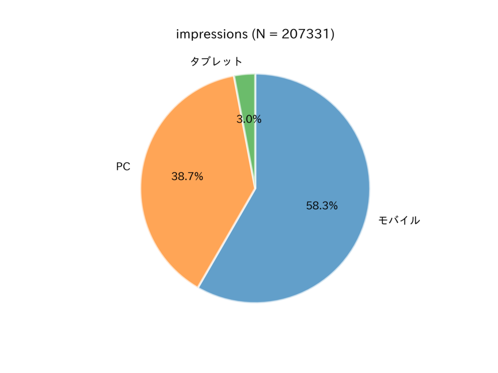 表示に用いられたデバイスの 58.3 % はモバイルであった。前年の 52.1 % から増加しており,より一層のモバイルフレンドリー化が求められる。