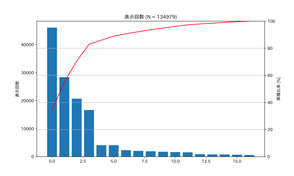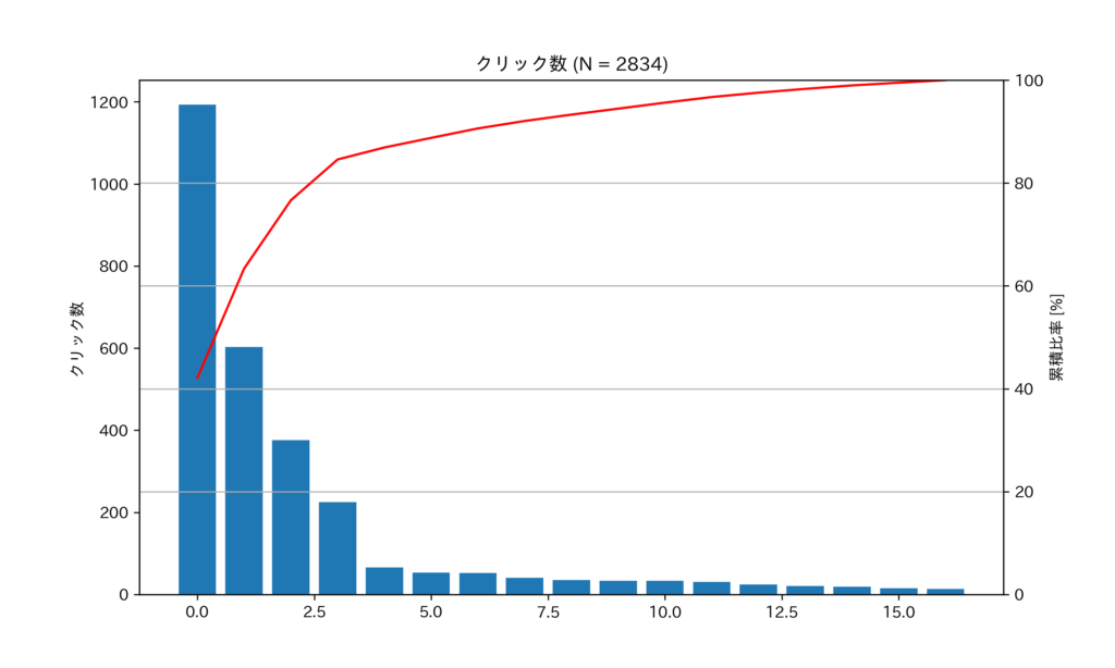 クリック数の上位 3 ページで全クリックの約 8 割を占めている。