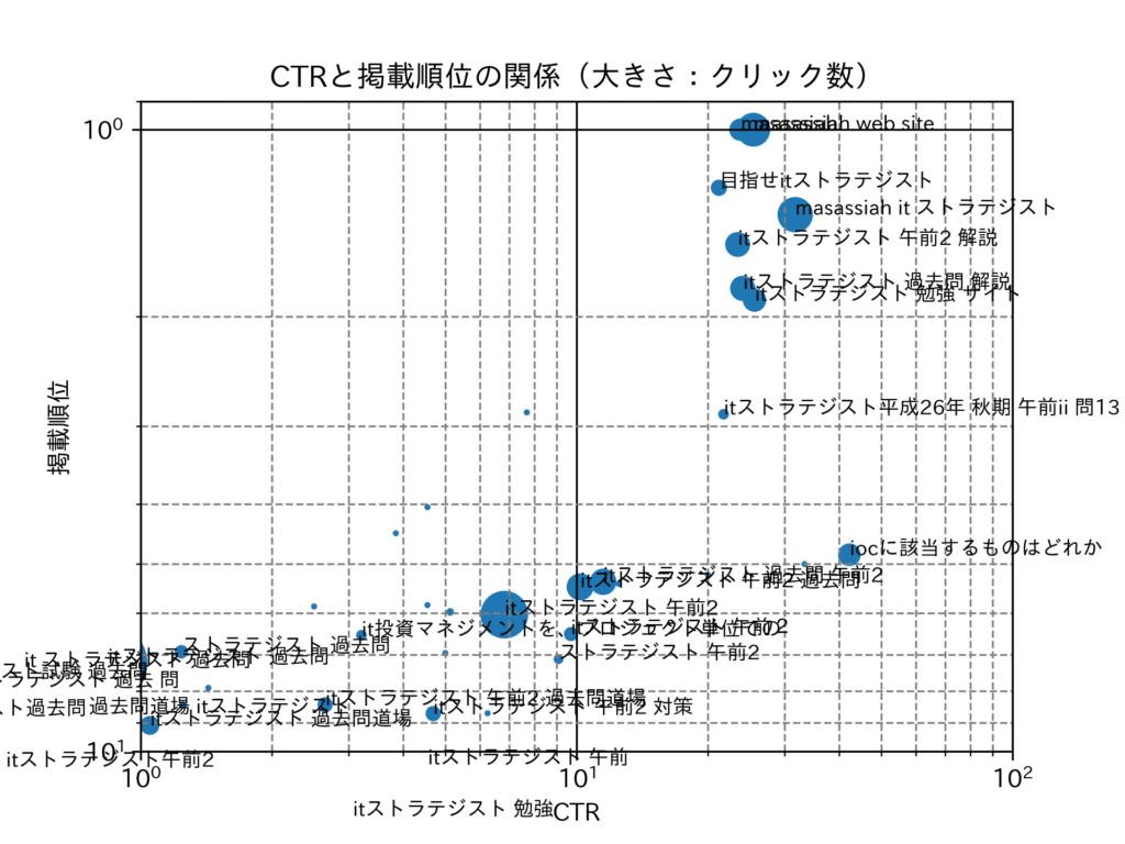 クエリ分析では,「目指せ it ストラテジスト」のようなブランド指名検索が一定数存在し,サイトの認知度が高まっていることが示唆される。一方で,表示回数は少ないが CTR が高いクエリも存在し,これらは今後の強化対象である。
