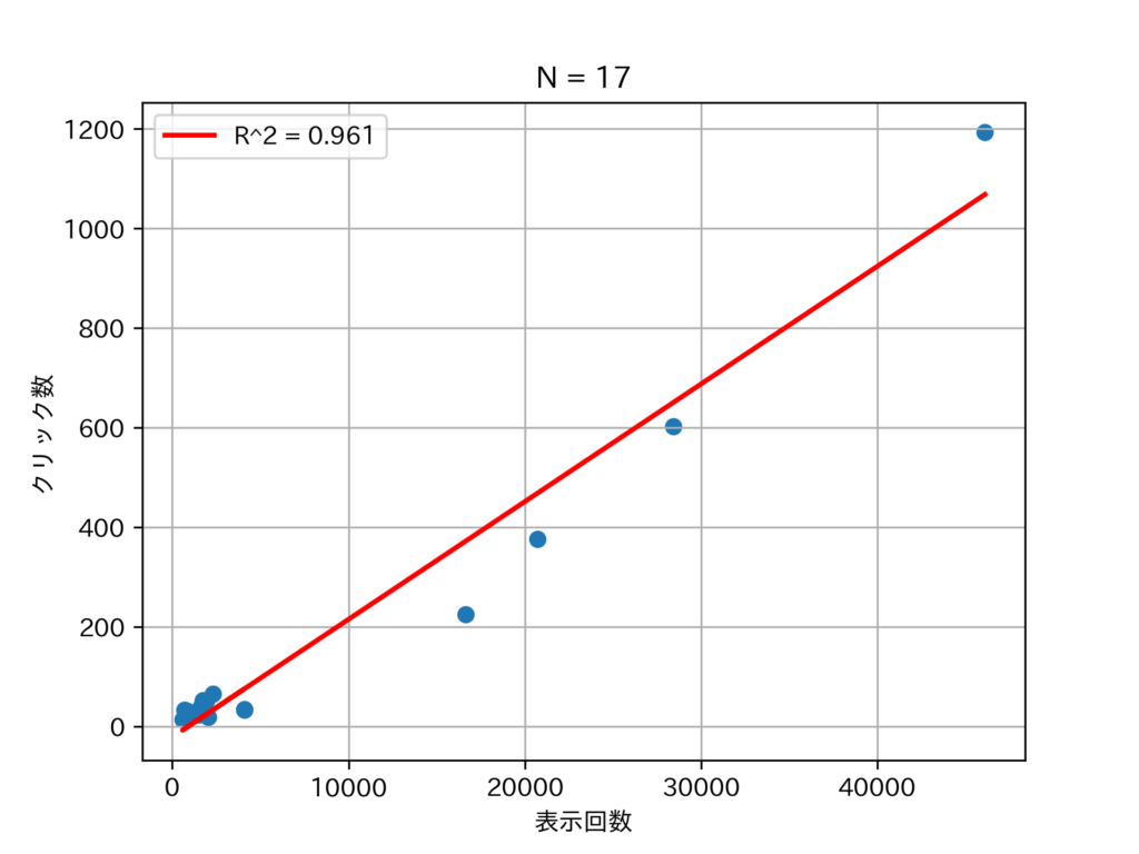 クリック数と表示回数の相関係数は 0.961 と非常に強い相関が認められる。トップページ以外は過去問題ページであり,傾向が似ているためと推察される。